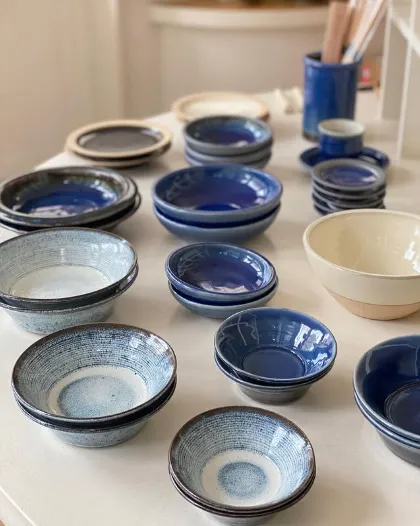 ウイリアム・モリスに影響を受け、 柳宗悦、河井寛次郎、浜田庄司、バーナード・リーチ等の民芸運動に共鳴し、 健全で美しい器を作り続け、現在は若い世代を中心に総勢16人となりました。