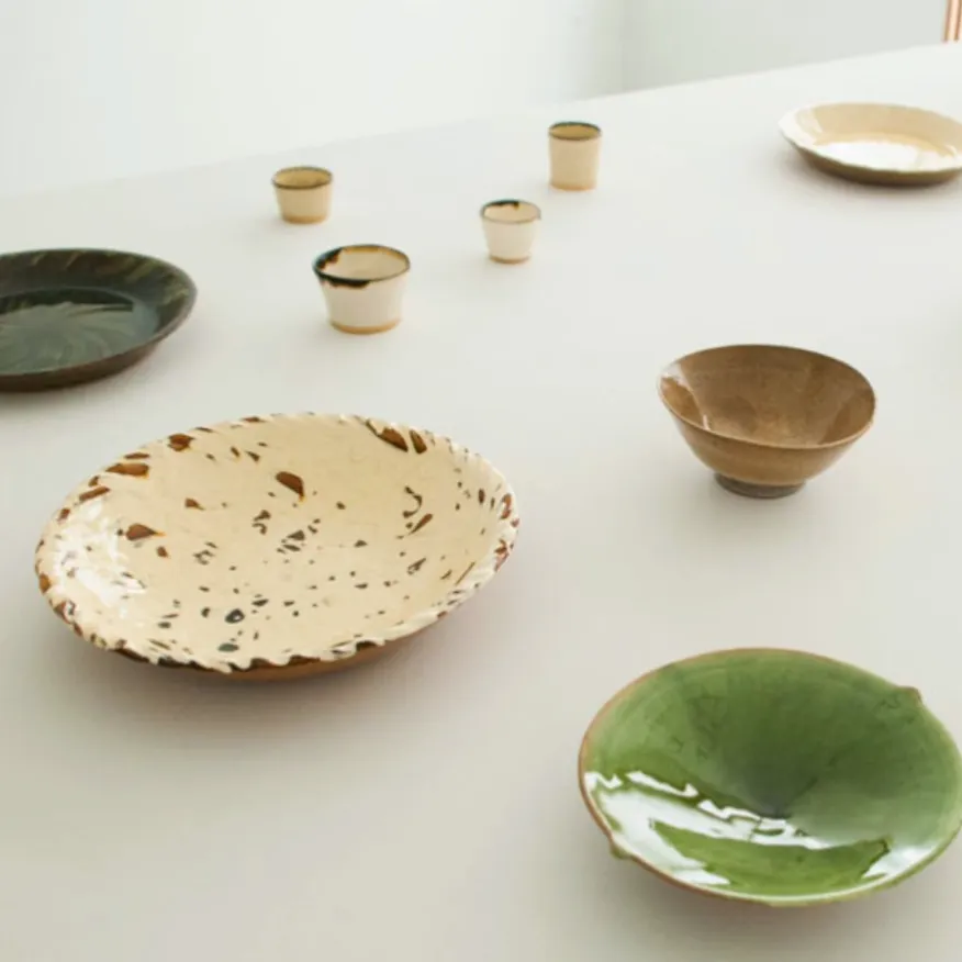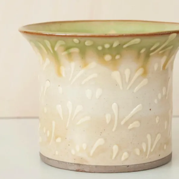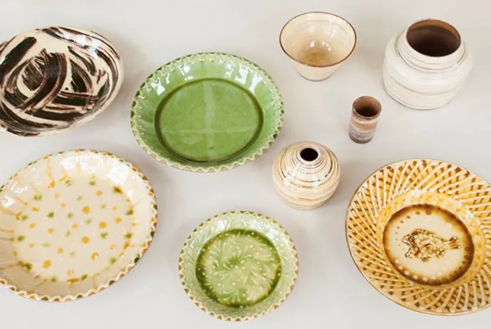 その趣味性やスリップウェアの技法やわらかな光沢の有る釉薬などが主な特徴といえます。